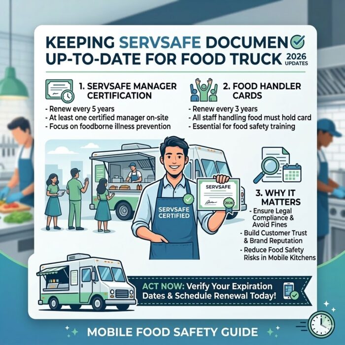 Staying proactive with your ServSafe renewal ensures your mobile business remains operational and safe. Check your local 2026 mandates today to keep your truck rolling!