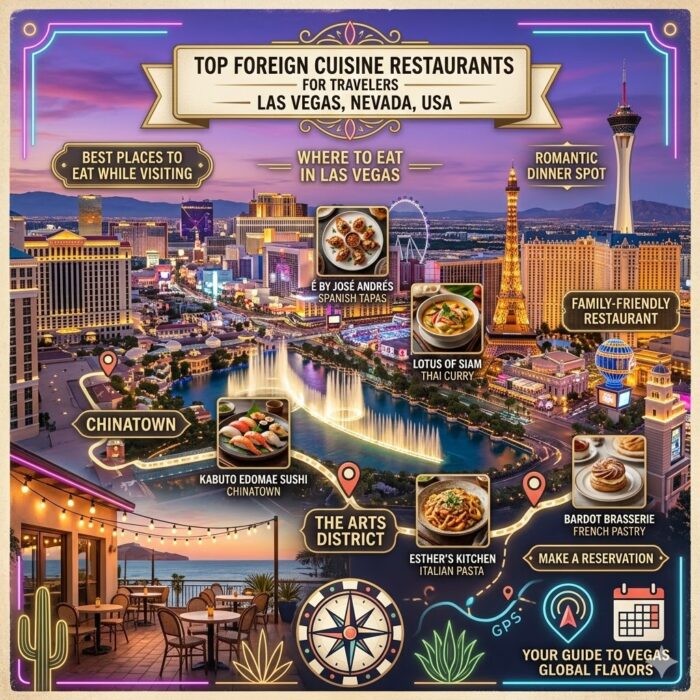 From fine dining near the Bellagio Fountains to hidden gems in Chinatown, this restaurant location guide highlights the city’s best independent international eateries.